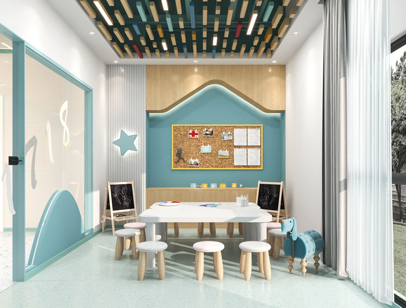 1:室內(nèi)裝飾不要太花哨,顏色不易太多,那樣會影響寶寶上課時的注意力的;