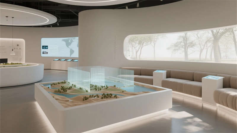 這座展廳以現(xiàn)代簡(jiǎn)約風(fēng)格為核心,打造流暢而富有張力的空間體驗(yàn)。入口區(qū)以開(kāi)放姿態(tài)迎接參觀者,核心展示區(qū)陳列創(chuàng)新展品,互動(dòng)區(qū)通過(guò)科技裝置激發(fā)探索樂(lè)趣。多媒體區(qū)以視聽(tīng)盛宴強(qiáng)化敘事,休息區(qū)則提供舒適角落促進(jìn)交流,會(huì)議區(qū)靈活多變適應(yīng)多樣需求。主題區(qū)巧妙融入本土特色,未來(lái)區(qū)以先鋒設(shè)計(jì)點(diǎn)燃靈感火花。整體設(shè)計(jì)中,簡(jiǎn)潔線條與中性色調(diào)營(yíng)造寧?kù)o基調(diào),高科技元素如數(shù)字屏和智能照明無(wú)縫融入,增強(qiáng)功能性與藝術(shù)感。空間動(dòng)線自然引導(dǎo),從喧囂到沉思,材質(zhì)選用環(huán)保而溫暖,綠植點(diǎn)綴平衡科技冷峻。展廳不僅服務(wù)于展示,更成為啟發(fā)對(duì)話與思考的場(chǎng)所,每一功能區(qū)銜接緊密,共同編織一場(chǎng)關(guān)于未來(lái)的故事。在合肥這座活力之城,設(shè)計(jì)以包容姿態(tài)回應(yīng)城市脈動(dòng),為公眾帶來(lái)沉浸式文化之旅。