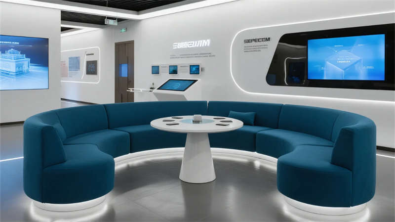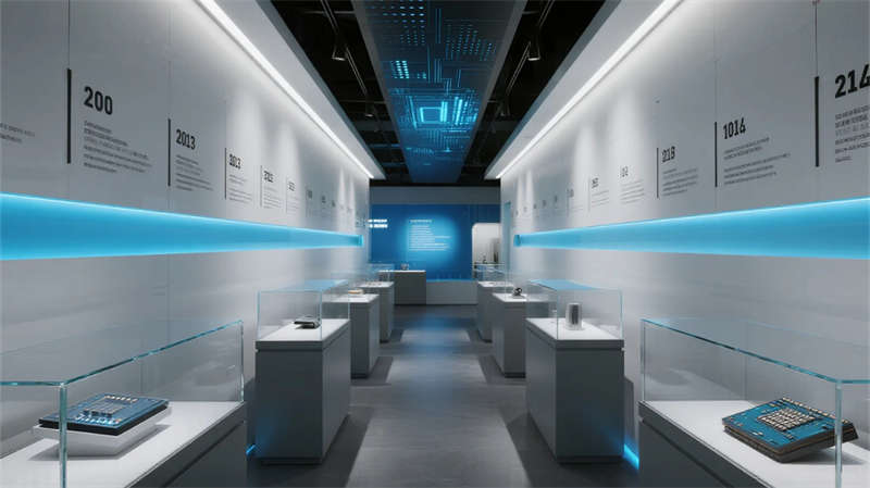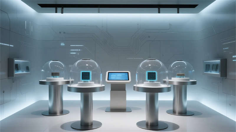 該半導(dǎo)體企業(yè)展廳以現(xiàn)代簡約風(fēng)格為核心,通過流暢空間布局與高科技元素,打造沉浸式科技體驗(yàn)。設(shè)計(jì)突出半導(dǎo)體技術(shù)的抽象表達(dá),利用藍(lán)色與灰色調(diào)營造冷靜、專業(yè)的氛圍,同時(shí)融入玻璃、金屬材質(zhì)增強(qiáng)通透感。入口區(qū)以懸浮雕塑引導(dǎo)視線,產(chǎn)品展示區(qū)通過簡約玻璃柜和觸屏互動(dòng),生動(dòng)呈現(xiàn)技術(shù)精髓;技術(shù)創(chuàng)新墻以動(dòng)態(tài)圖文展現(xiàn)工藝演進(jìn),歷史廊道則以線性敘事喚起行業(yè)記憶?;?dòng)區(qū)和未來展望區(qū)強(qiáng)調(diào)參與性,采用環(huán)形屏幕與全息投影,讓訪客直觀感受創(chuàng)新應(yīng)用。休息區(qū)與演講區(qū)注重人性化,簡約家具結(jié)合微光紋理,提供舒適交流空間。整體設(shè)計(jì)摒棄繁復(fù)裝飾,以干凈線條和光影變化強(qiáng)化空間流動(dòng)性,不僅傳遞半導(dǎo)體領(lǐng)域的精密與前瞻性,更通過美學(xué)融合提升教育性和觀賞性。展廳作為科技展示平臺,旨在激發(fā)探索興趣,體現(xiàn)企業(yè)對創(chuàng)新文化的重視。